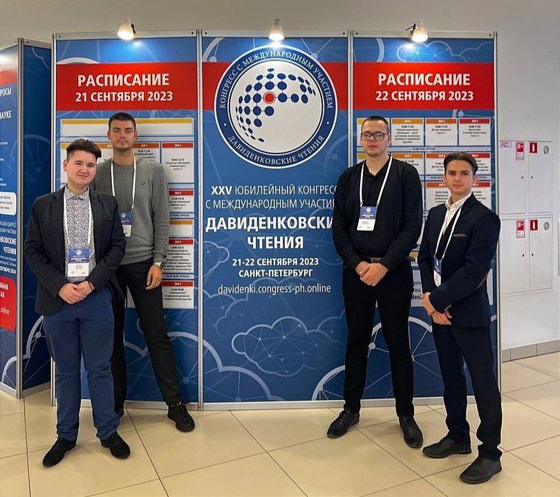 В Санкт-Петербурге состоялся XXV Юбилейный конгресс с международным участием «Давиденковские чтения». В нем приняли участие представители Донецкого государственного медицинского университета им. М. Горького: ассистент Валерий Валерьевич Масенко, ординатор 2 года Павел Сергеевич Исаенко и участники Студенческого научного кружка, студенты 5 курса педиатрического факультета Михаил Абакумов и Владислав Васильченко.