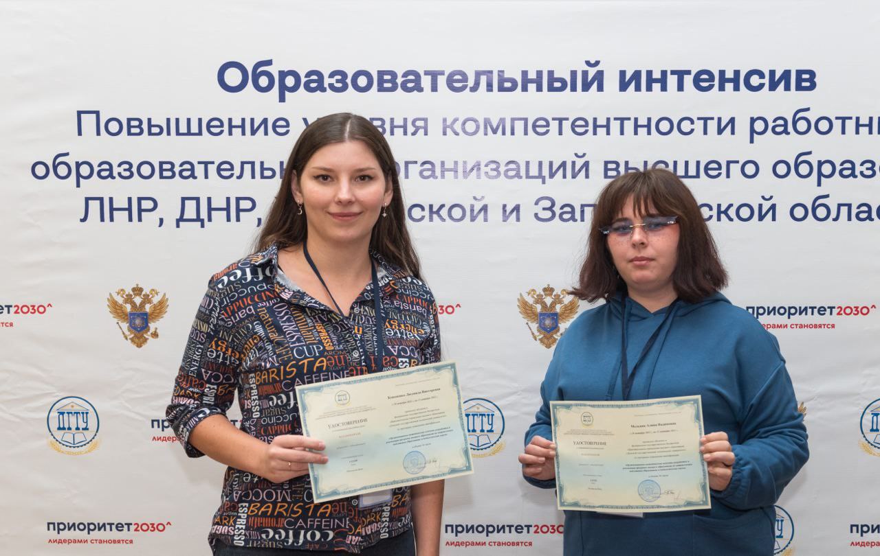 Асс. А. В. Мельник и асс. Л. В. Кононенко прошли обучение на базе Донского государственного технического университета по программе повышения квалификации «Организационно-методические аспекты разработки и реализации программ высшего образования по направлению подготовки. Образование и педагогические науки».