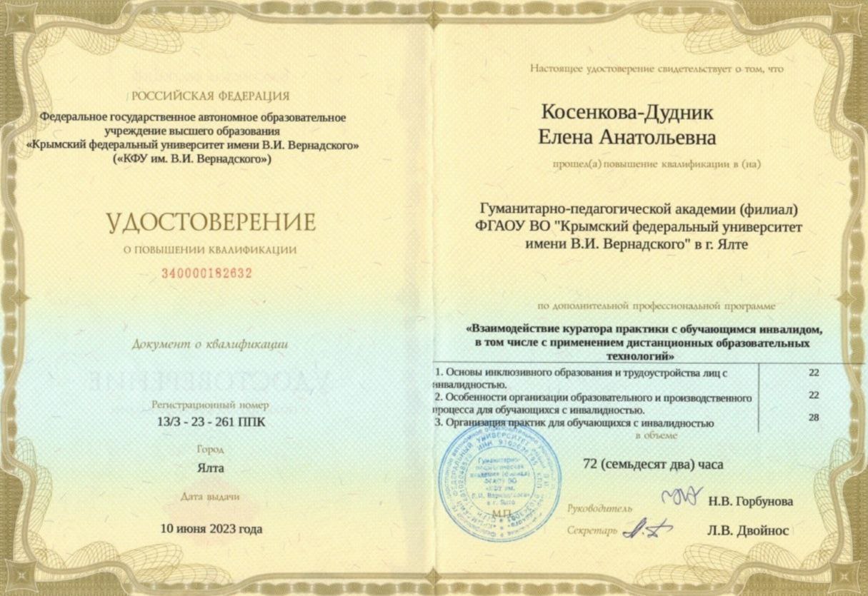 С широким внедрением в образование дистанционных технологий люди с различными физическими особенностями получили дополнительные возможности для развития и обучения. Преподаватели кафедры русского, латинского языков и медиакоммуникаций ФГБОУ ВО ДонГМУ Минздрава России прошли курсы повышения квалификации на базе Гуманитарно-педагогической академии (филиал) ФГАОУ ВО «Крымский федеральный университет имени В. И. Вернадского» в Ялте по программе «Взаимодействие куратора практики с обучающимся инвалидом, в том числе с применением дистанционных образовательных технологий».