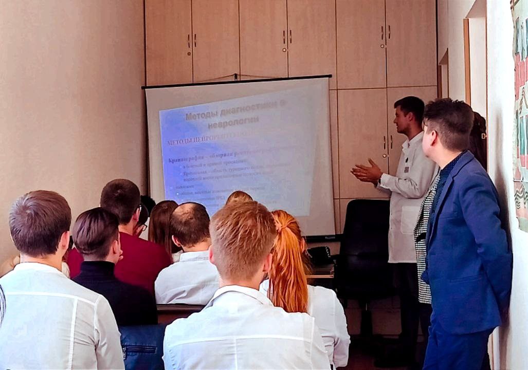 После рассмотрения организационных вопросов участникам заседания представлен доклад на тему: «Современные методы диагностики в неврологии. Особенности методов нейровизуализации», который подготовил ординатор 2-ого года Павел Сергеевич Исаенко. Следующее заседание кружка будет посвящено клинической анатомии в рамках неврологического осмотра.